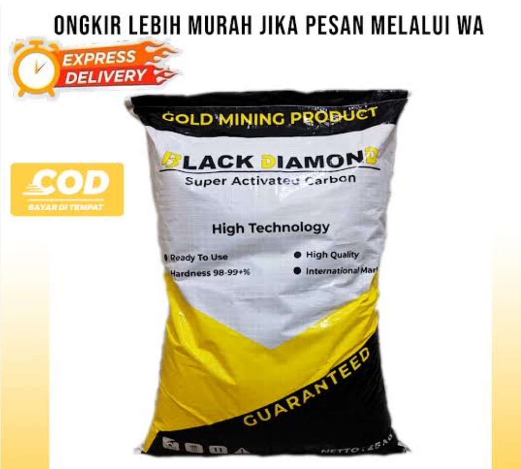 Karbon Aktif Black Diamond Khusus Tambang Emas !! – Karkoon …Black Diamond is a high-quality activated carbon brand commonly used for gold extraction, water purification, and industrial filtration, available in meshes like 6×12. It typically features high adsorption capacity (1200 iodine) for capturing gold from mud in mining systems, often sold in 25kg bags.